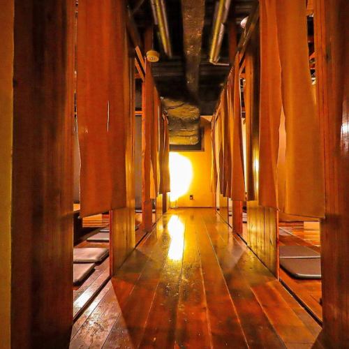 개인실로의 통로, 방까지의 현장감도 소중히 하고 있습니다.접대나 회식, 기념일 등 프라이빗한 공간에서 식사나 상담을 즐길 수 있습니다.